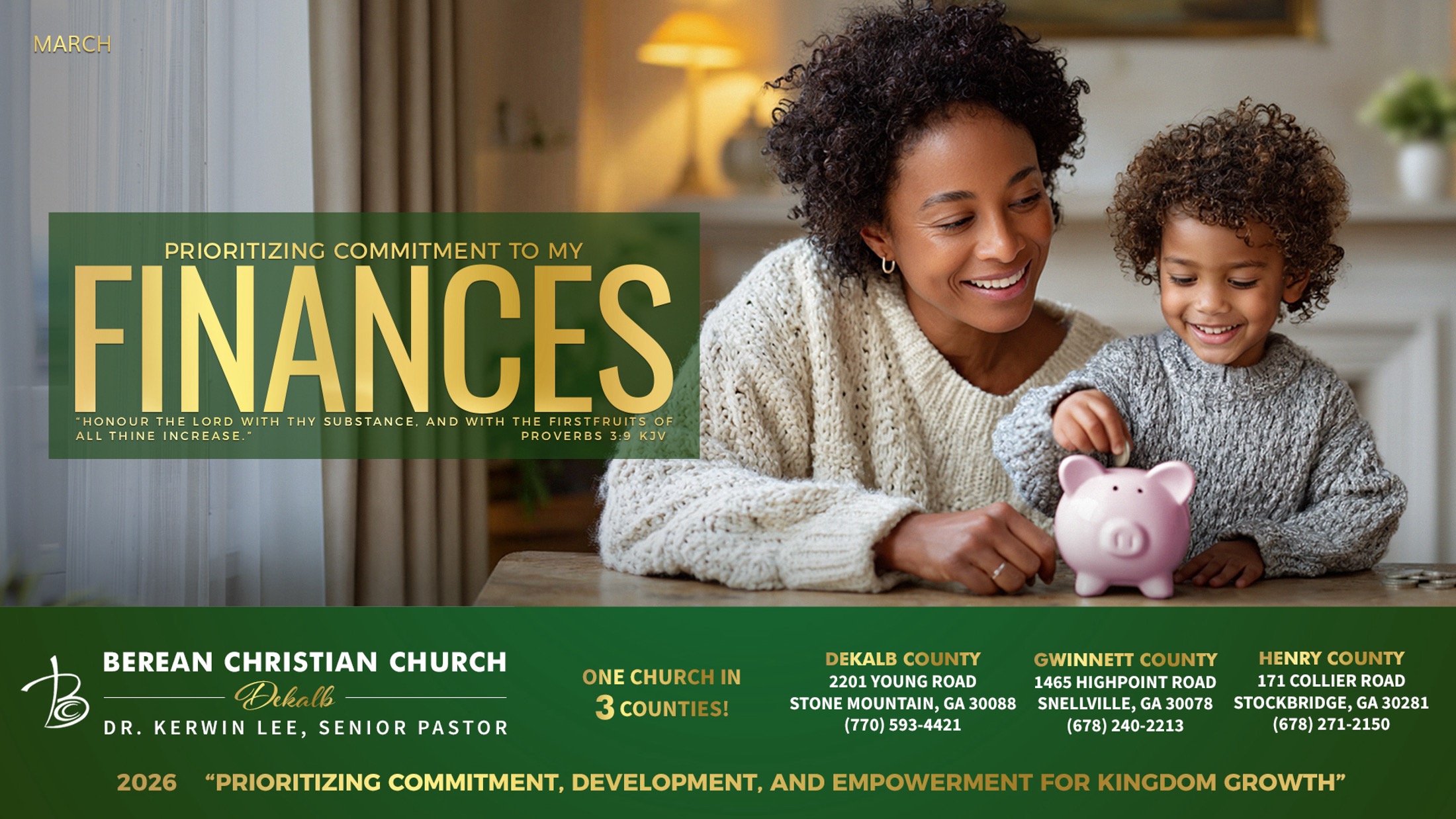 Dr. Kerwin B. Lee is the Senior Pastor and Founder of Berean Christian Church in Stone Mountain, Georgia. This church began in 1995 with 200 individuals and has grown to over 10,000 members. In 2006, he established a second church location in Snellville, Georgia. A third campus was launched in Stockbridge, Georgia during the latter part of 2015. All three locations have experienced phenomenal growth since their inception. Dr. Lee’s charismatic personality, contagious humor and attitude have attracted people from all walks of life.